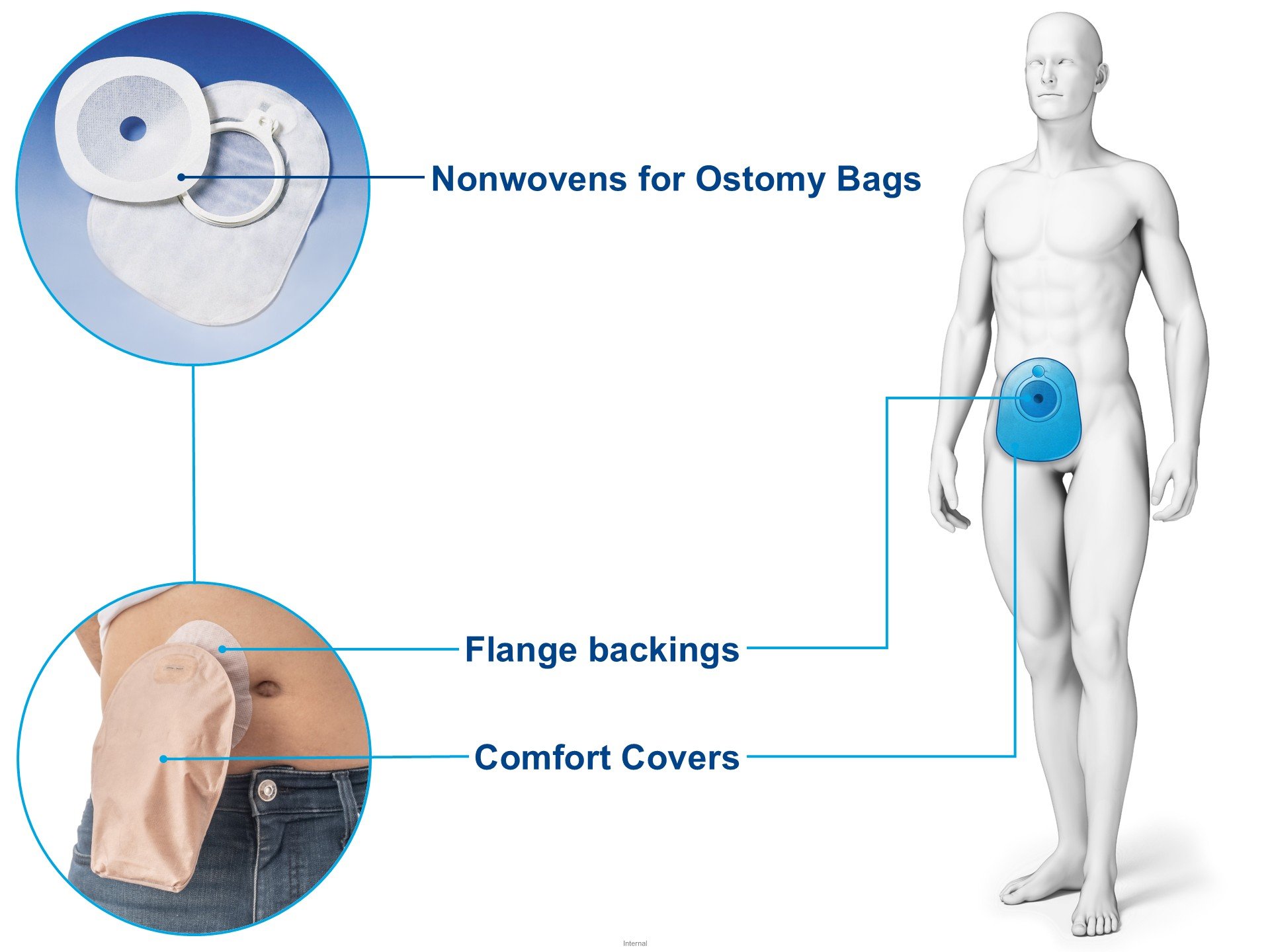 Odor control and safety are crucial for patients who become dependent on ostomy pouches after surgery. Our portfolio includes soft nonwovens for comfort covers and strong, weldable nonwovens for flanges.